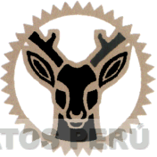 El diseño estilizado de una cabeza de venado, encerrada dentro de un círculo, todo en los colores negro y dorado, conforme al facsimil adjunto