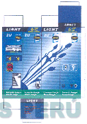 El diseño de una caja empaque conteniendo una figura irregular desde donde salen las figuras estilizadas de cuatro tallos con copos de rosas y demás figuras irregulares, todo en la combinación de colores azul, celeste, blanco, verde, negro, amarillo y rojo; conforme al modelo adjunto