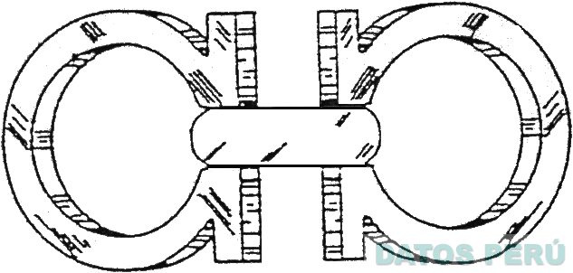 LA FIGURA DE DOS HERRADURAS DISPUESTAS HORIZONTALMENTE UNIDAS POR UNA BANDA, CONFORME AL MODELO ADJUNTO
