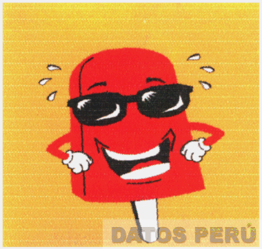 LA FIGURA DE UN HELADO SONRIENTE DE COLOR ROJO CON GUANTES BLANCOS, ANTEOJOS DE COLOR NEGRO Y GOTAS DE COLOR BLANCO ALREDEDOR, TODO EN FONDO AMARILLO; CONFORME AL MODELO ADJUNTO,