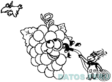El logotipo conformado por el diseño humanizado y sonriente de un racimo de uvas, que está siendo mojado con agua proveniente de una manguera sostenida por un niño y sobre el cual aparece volando un pájaro; conforme al modelo adjunto