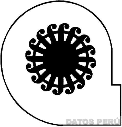 FIGURA CIRCULAR TERMINANDO EN SU PARTE INFERIOR DERECHA EN UNA FORMA SEMICUADRADA, DICHA FIGURA CONTIENE LA REPRESENTACION DE UN VENTILADOR CIRCULAR CON UNA SUCESION DE ASPAS CURVAS, CONFORME AL MODELO ADJUNTO