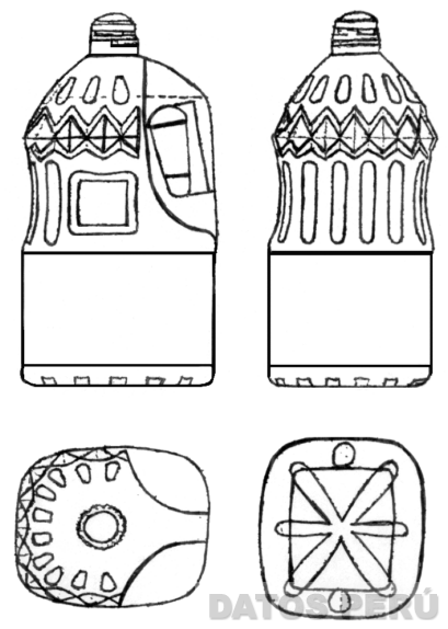 EL ENVASE DE 5 LITROS, DE FORMA CILINDRICA ANGOSTA EN LA PARTE SUPERIOR Y ENSANCHADA EN LA PARTE INFERIOR, CUYO CUELLO TIENE DOS ANILLOS EN ALTO RELIEVE FUNCIONAL EN LA FIJACION DE LA TAPA, Y FIGURAS TRIANGULARES DE FORMA DE UNA PALETA, EN LA PARTE SUPERIOR DEL ENVASE SE APRECIA FIGURAS PEQUEÑAS OVALADAS Y EL DISEÑO DE FIGURAS TRIANGULARES DECORATIVAS EN ALTO RELIEVE EN TODA LA CIRCUNFERENCIA, EN LA PARTE CENTRAL LA FIGURA DE UN CUADRILATERO INCRUSTADO EN OTRO, CUYO LADO DEL ASA SE TRANSFORMA EN UN PUNTO DE UNA MEDIA PARABOLA, EN LA BASE SE APRECIA FIGURAS RECTANGULARES; CONFORME AL MODELO ADJUNTO,