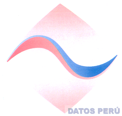 LOGOTIPO DE ROMBO CON LOS LADOS LIGERAMENTE CONVEXOS, DE FONDO COLOR ROSADO, CON DOS LINEAS CURVAS EN COLORES ROJO Y CELESTE, CONFORME AL MODELO ADJUNTO
