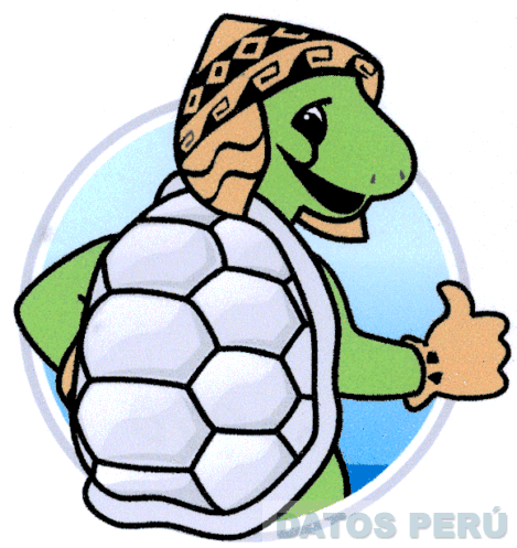 El logotipo conformado por la figura caricaturesca de una tortuga de color verde, la cual porta un chullo de color marrón y negro, tiene el caparazón color plomo y negro y guantes de color marrón, la figura está sobrepuesta a un círculo de color azul en degradé, con borde blanco y plomo; conforme al modelo adjunto