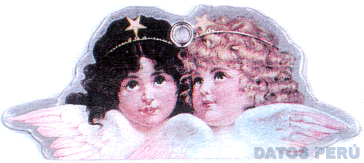 LA FIGURA ESTILIZADA DE DOS ANGELITOS CON LABIOS DE COLOR ROJO, UNO AL LADO DEL OTRO MIRANDO HACIA ARRIBA CON CABELLO ONDULADO, UNO RUBIO Y EL OTRO CON CABELLO NEGRO; AMBOS CON VINCHA DORADA EN LA CABEZA Y UNA ESTRELLA EN EL CENTRO; CON ALAS BLANCAS CON LAS PUNTAS DE COLOR MELON, CONFORME AL MODELO ADJUNTO
