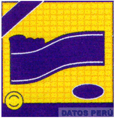 La figura de un cuadrado con fondo amarillo, con líneas de color anaranjado, sobre las cuales se ubica en la parte central una figura irregular de color azul que contiene en su interior una línea blanca en el lado superior e inferior; asimismo se aprecia una franja de color azul en la parte inferior y en la parte superior izquierda una franja en diagonal de color azul; conforme al modelo adjunto