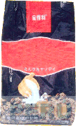 El logotipo conformado por diversos caracteres chinos, todo dentro de una figura irregular ubicado en la parte céntrica, en la parte superior se aprecia una figura irregular con tres caracteres chinos, en la parte inferior la figura estilizada de granos de café con una taza y dos caramelos; todo en la combinación de color rojo, negro, blanco, marrón y beige; conforme al modelo adjunto