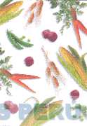 El logotipo conformado por la representación estilizada de espigas de trigo, zanahorias, arvejas, maíz y figuras cúbicas, todo en los colores blanco, beige, verde, amarillo, rojo y anaranjado; conforme al modelo adjunto