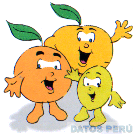 LA FIGURA DE UNA NARANJA, UNA MANDARINA Y UN LIMON EN FORMA DE CARICATURA, CON BRAZOS, PIERNAS Y ROSTROS SONRIENDO Y SALUDANDO, CON SOMBRA EN LOS COLORES ANARANJADO CLARO, ANARANJADO OSCURO, VERDE LIMON, VERDE, GRIS, CELESTE, BLANCO Y NEGRO, CONFORME AL MODELO ADJUNTO