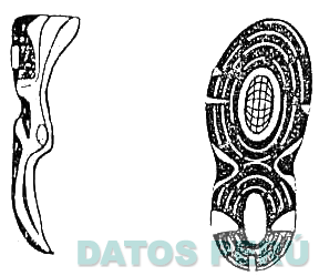 La figura bidimensional de una planta de calzado; en cuya parte superior se aprecian tres figuras irregulares y líneas curvas alrededor de una figura ovoide conteniendo en su interior líneas entrecruzadas, debajo dos figuras irregulares y en la parte inferior una figura ovoide, apreciándose alrededor líneas curvas y tres figuras irregulares; conforme al modelo adjunto