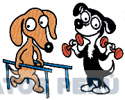 La representación estilizada de dos perros, uno de ellos sostiene pesas y el otro está apoyado sobre dos barandas, todo en la combinación de colores rojo, negro, azul, blanco y marrón; conforme al modelo adjunto