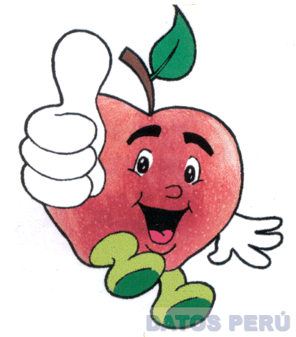 LA FIGURA ESTILIZADA DE UNA MANZANA CON UNA SONRISA, EL DEDO PULGAR DERECHO HACIA ARRIBA, TODO EN LA COMBINACION DE COLORES ROJO, VERDE, BLANCO, NEGRO Y MARRON, CONFORME AL MODELO ADJUNTO