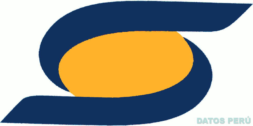 El logotipo conformado por una figura ovalada rodeada por dos figuras irregulares; todo en los colores anaranjado y azul; conforme al modelo adjunto