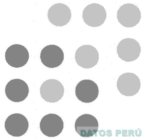 El diseño de pequeño círculos que dan forma de dos cuadrados superpuestos, sin reivindicar colores; conforme al modelo adjunto