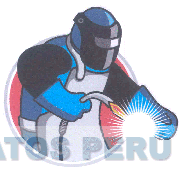 El logotipo conformado por la figura estilizada de un soldador cogiendo un soplete para soldar; dicha figura se encuentra en parte dentro de un círculo; todo en la combinación de colores rojo, gris, plomo, blanco, negro, azul y amarillo; conforme al modelo adjunto