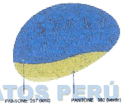 El logotipo conformado por una figura ovalada, cuya parte superior es de color azul pantone 287 y cuya parte inferior es de color verde pantone 383; conforme al modelo adjunto
