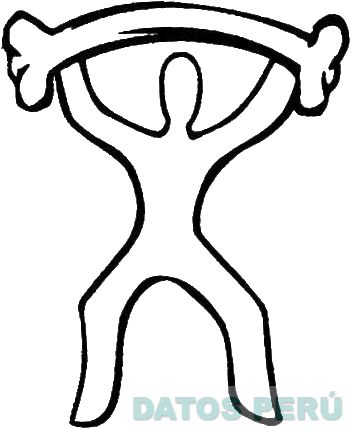 El logotipo conformado por la figura estilizada de un hombre con ambos brazos hacia arriba, que sostiene un hueso, sin reivindicar colores; conforme al modelo adjunto