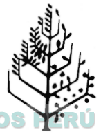 El diseño estilizado de un árbol conífero que presenta abundancia de hojas en el lado superior izquierdo, menor cantidad de hojas en el lado superior e inferior derecho y sólo ramas en el lado inferior izquierdo, conforme al modelo adjunto