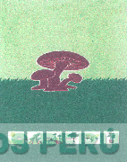 El logotipo conformado por la figura estilizada de tres hongos; debajo se aprecian las figuras de seis cuadrados conteniendo diversas imágenes con motivos agrícolas, todo dentro de una figura geométrica, en los colores marrón, blanco, amarillo y verde en distintas tonalidades; conforme al modelo adjunto