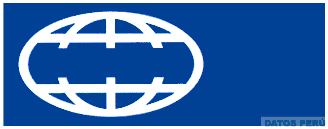 El diseño estilizado de un globo terráqueo de color blanco dispuesto sobre un fondo rectangular de color azul; conforme al modelo adjunto