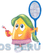 La figura característica de un mango con pelo largo que sostiene en una mano una raqueta y con la otra un refresco; en los colores amarillo, anaranjado, verde, rojo, negro, azul, morado y blanco; conforme al modelo adjunto