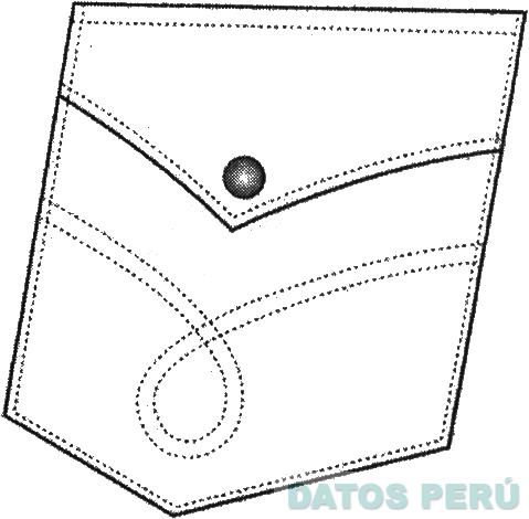 El diseño conformado por una figura pentagonal que representa un bolsillo, con doble reborde a manera de pespunte, que presenta dos elementos ornamentales