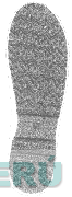 La figura bidimensional de una planta de calzado en alto relieve cuya suela y taco están formadas por líneas en zigzag paralelas así como figuras similares a rombos y un espacio libre en el que se encuentra un círculo para marcar la talla, con corte chaflán en todo el borde; conforme al modelo adjunto