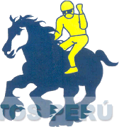 El diseño estilizado de un caballo a galope con un jinete, en la combinación de colores azul, blanco y amarillo; conforme al modelo adjunto