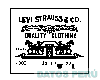 La etiqueta representativa de dos caballos con sus arrieros caminando en dirección opuesta, separados por la figura de un pantalón, según el modelo adjunto a la solicitud