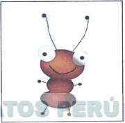 La figura caricaturizada de una hormiga, en los colores marrón, negro y blanco; conforme al modelo adjunto