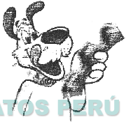 La figura humanizada de un perro sacando la lengua y sosteniendo un bocadillo, con la mano; conforme al modelo adjunto