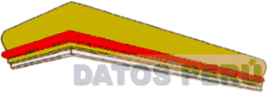 FIGURA ANGULAR EN PERSPECTIVA FORMADA POR UNA SUCESION DE LINEAS RECTANGULARES EN COLORES AMARILLO, ROJO, AMARILLO Y BLANCO, DELINEADAS EN COLOR NEGRO, CONFORME AL MODELO ADJUNTO,
