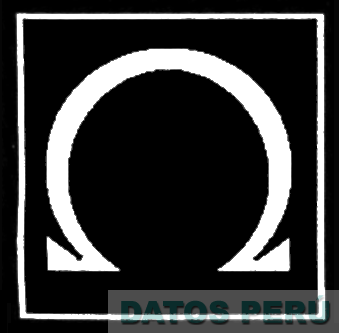 El logotipo de forma cuadrangular de fondo color negro que contiene otra figura cuadrada con bordes de color blanco, la misma que contiene a su vez el símbolo omega en color blanco; conforme al modelo adjunto