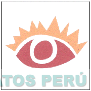 La representación estilizada de un ojo con pestaña, en colores guinda y mostaza; conforme al modelo adjunto