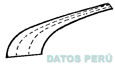 La representación de una faja curva divida en tres secciones, siendo gruesa en su parte inferior y angosta en su parte superior, según modelo ajunto