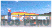 La representación estilizada de una estación de servicios de combustible en la combinación de colores rojo, amarillo, anaranjado, azul, verde, celeste y plomo; todo conforme al modelo adjunto