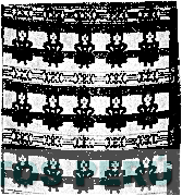 La representación de una mujer con falda y sombrero dispuesta de manera repetida en tres líneas horizontales y diversos trazos irregulares; conforme al modelo adjunto