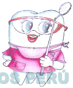 El logotipo conformado por la figura humanizada de un diente sonriente, que lleva lentes de laboratorio y esta vestido con una túnica, en la mano izquierda lleva una herramienta de odontólogo y en el cuello, lleva una mascarilla de seguridad, todo en los colores verde, rojo, gris, celeste, y fucsia; conforme al modelo adjunto