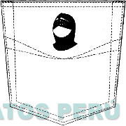 La representación estilizada de un bolsillo formado por pespuntes en cuya parte central se observan dos líneas curvas intersectadas y sobre ellas la representación de un yelmo estilizado, en los colores blanco y negro; conforme al modelo adjunto