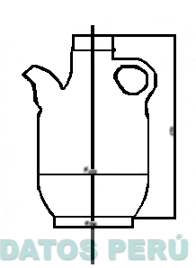 El envase característico de forma cilíndrica gobular en la base, con doble salida, una asa semicircular de un lado y un pico rectocóncavo del otro lado, caracterizado por desarrollar una salida de cuello corto que está sellado por una tapa característica; conforme al modelo adjunto