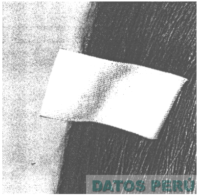 LA ETIQUETA CUADRADA DIVIDIDA EN DOS CAMPOS, EL CAMPO DEL LADO DERECHO FORMADO POR UN TRAMADO DE LINEAS Y EN LA PARTE CENTRAL DE MANERA SOBREPUESTA SE OBSERVA UNA BANDA RECTANGULAR, CONFORME AL MODELO ADJUNTO,