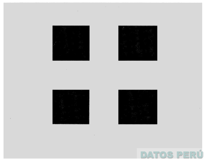 Una figura cuadrangular en cuyo interior se aprecian cuatro cuadrados, sin reivindicar colores; conforme al modelo adjunto