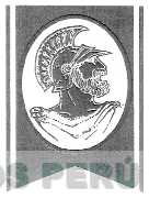 La figura rectangular sombreada cuya parte inferior termina en dos puntas, en cuyos lados laterales se aprecian dos líneas verticales sin sombrear, en su interior aparece la figura de un óvalo con borde sombreado e interior sin sombrear que consigna el rostro estilizado de un guerrero romano, sin reivindicar colores; conforme al modelo adjunto