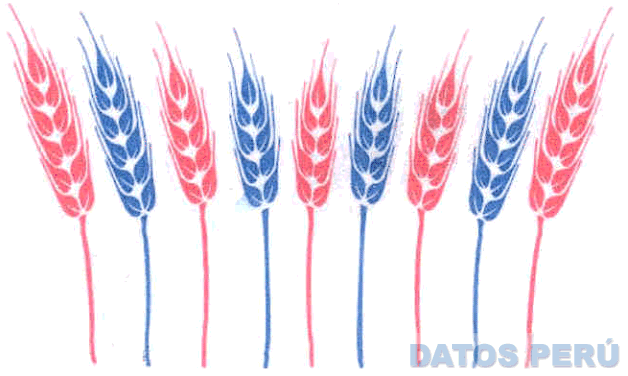 El diseño estilizado de espigas, en los colores rojo y azul; conforme al modelo adjunto