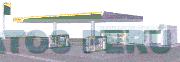 La representación del diseño de una estación de servicio de automóviles, en los colores blanco, gris, verde (pantone 348C) y amarillo (pantone 123C); conforme al modelo adjunto