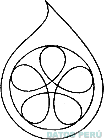 El diseño de una figura en forma de gota que presenta un círculo y dentro de éste cinco figuras ovoides formadas por un trazo de características curvas; conforme al modelo adjunto