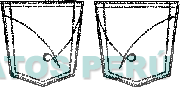 El diseño formado por dos figuras pentagonales que representan dos bolsillos, con doble reborde a manera de pespunte, donde cada figura presenta un diseño formado por trazos curvos que se entrecruzan, formando una figura irregular; conforme al modelo adjunto