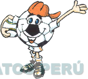 El logotipo conformado por la figura humanizada de una pelota de fútbol, apreciándose una gorra sobre su cabeza y una pelota debajo de su brazo izquierdo, en los colores rojo, blanco y negro; conforme al modelo adjunto