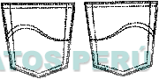 El diseño formado por dos figuras pentagonales que representan dos bolsillos, con doble reborde a manera de pespunte, donde cada figura presenta dos líneas ondulantes que se unen en un extremo; conforme al modelo adjunto